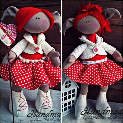 Pamiętacie jeszcze biało czerwoną elficzke? Mam nadzieje ze tak, tym razem na specjalne życzenie powstała wersja szmaciana tej lalki. Elfica powędruje do niespełna 2 letniej Tosi i mam nadzieje ze będzie mocno kochana i tulona.