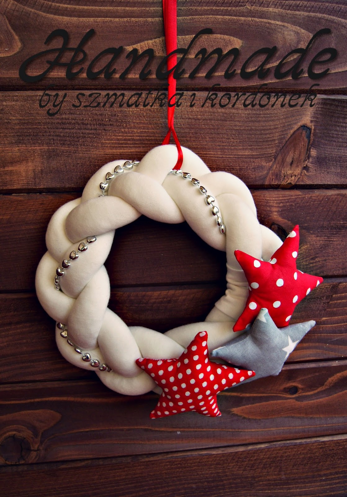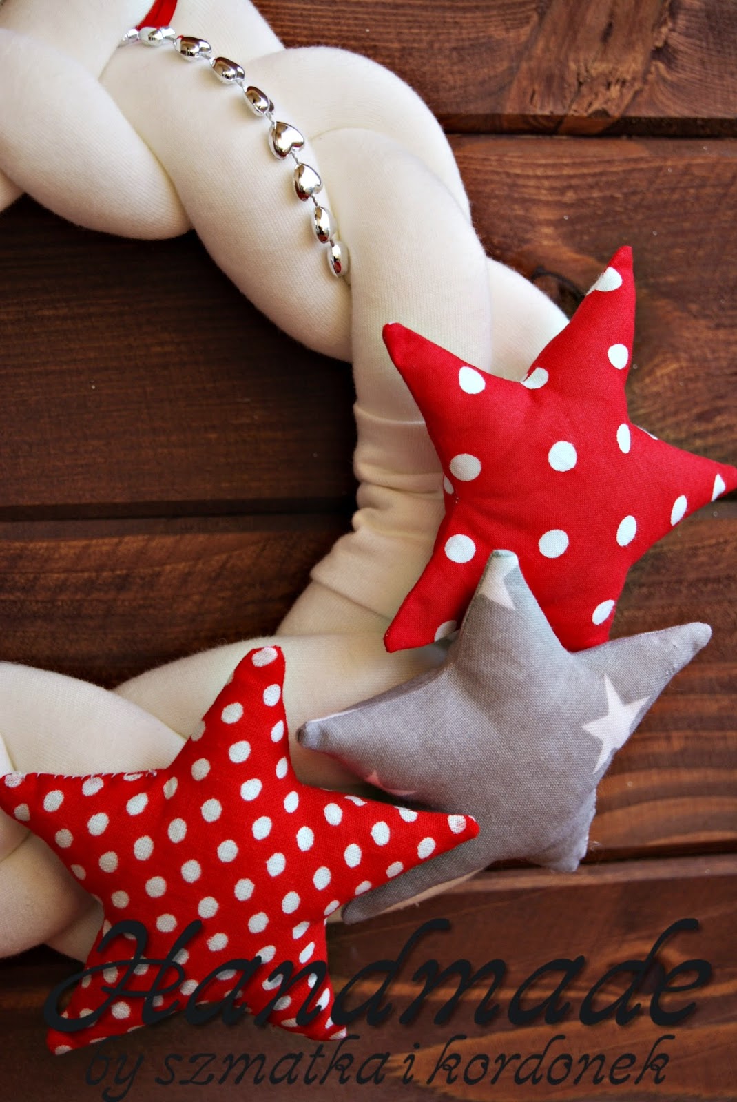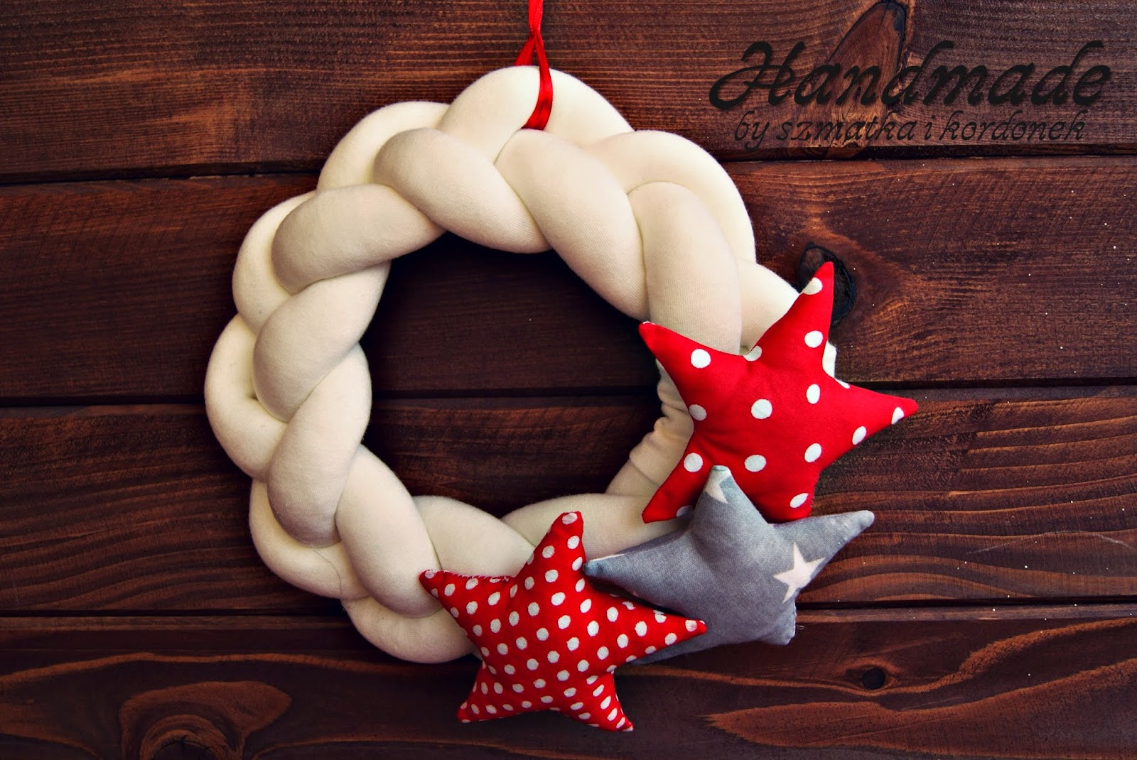 miękki wianek z dzianiny z bawełnianymi gwiazdami