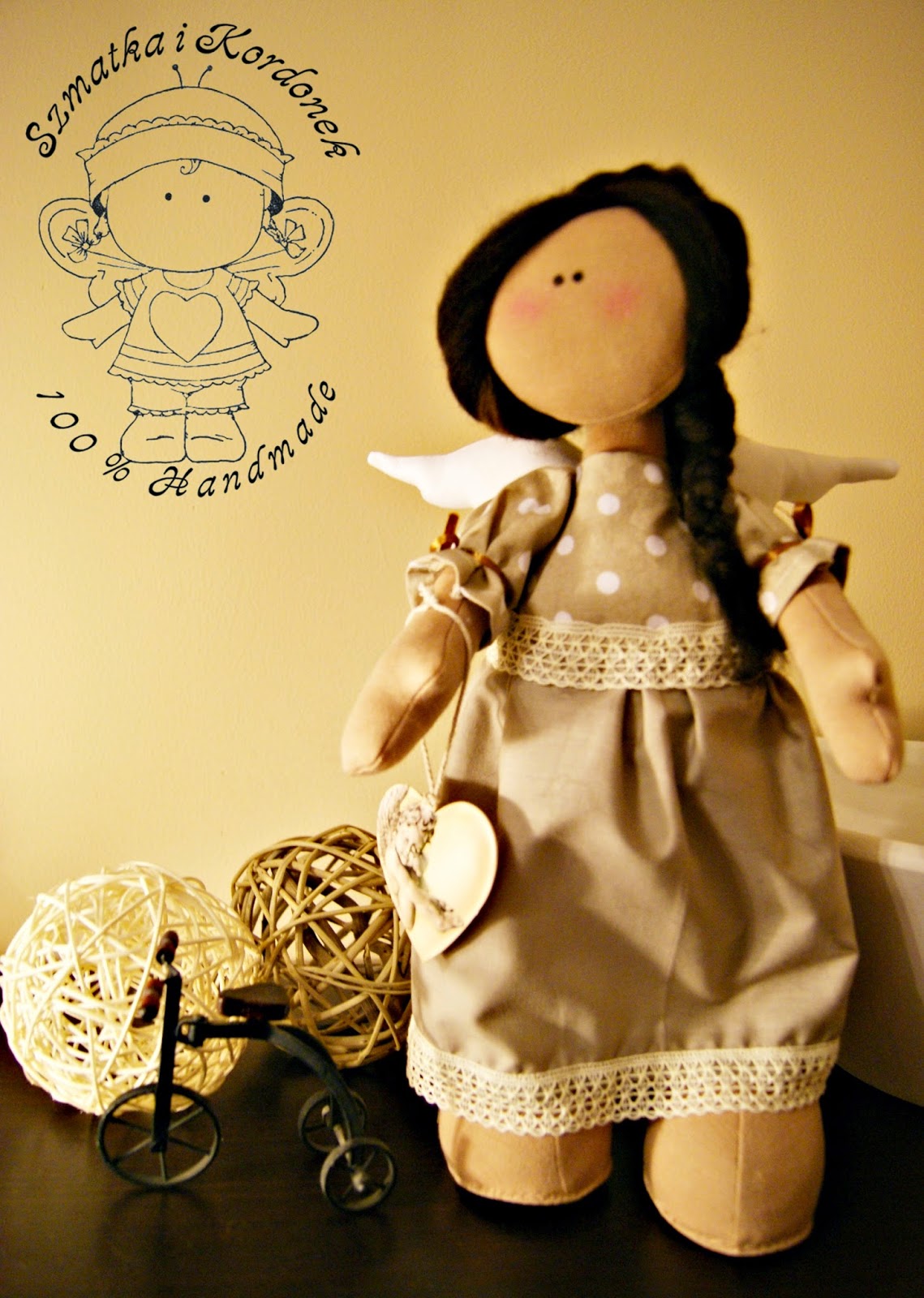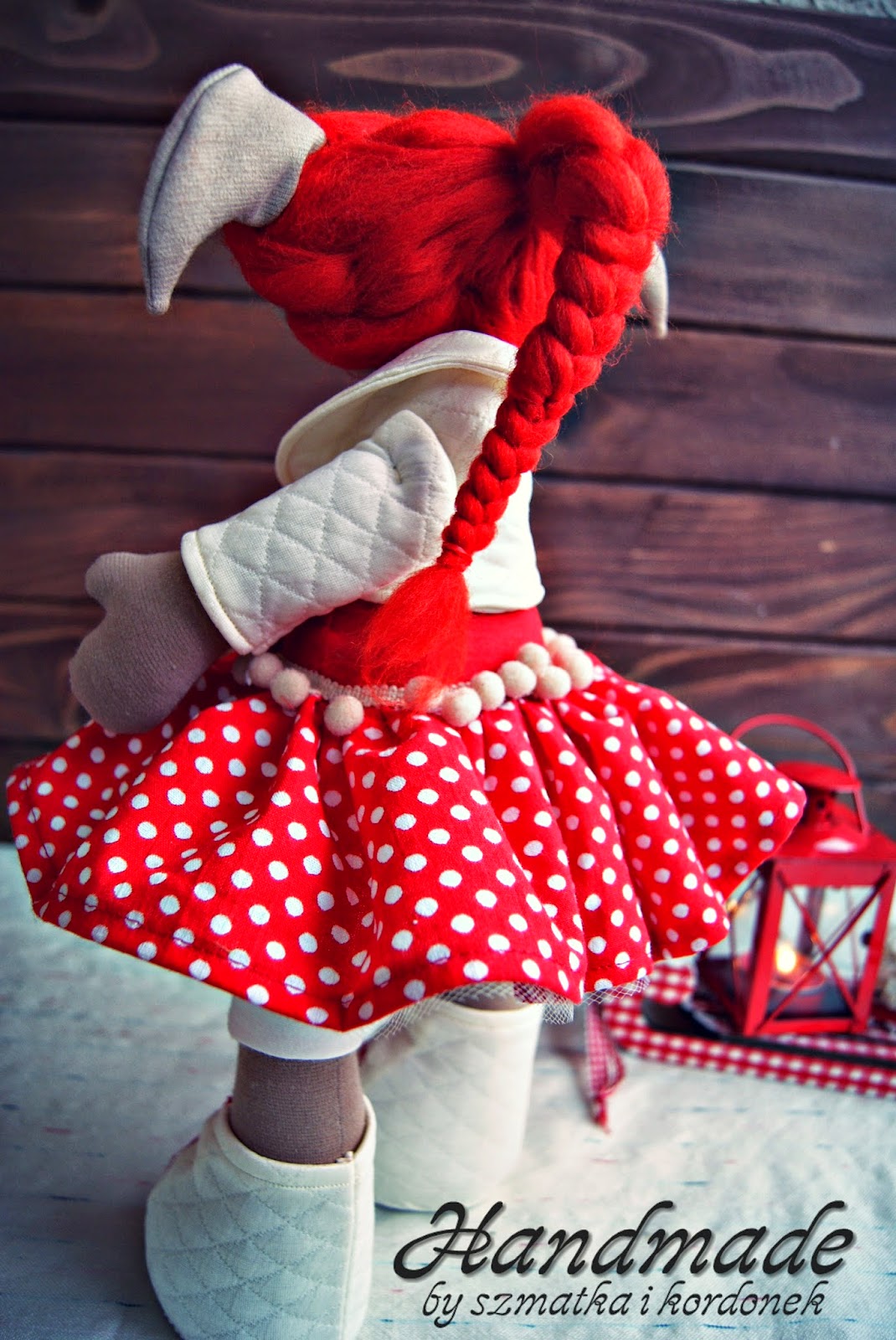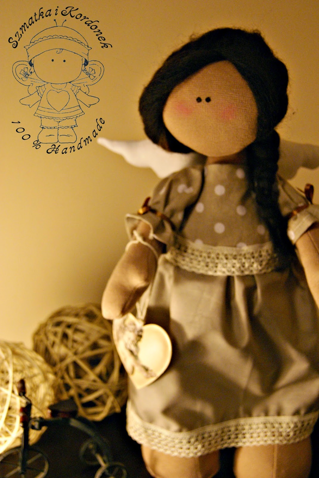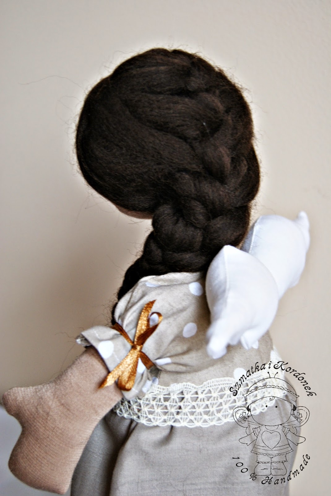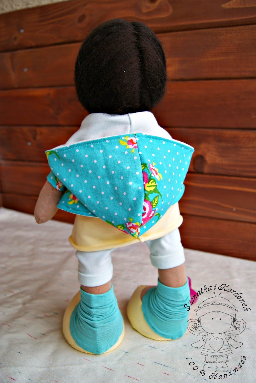 Nie jestem fanką lalek z uśmiechem bo wole takie "bez buźkowe" ale nie odmawiam szycia takich uśmiechniętych. Na specjalne zamówienie powstała lalka szmacianka dla dziewczynki która uwielbia intensywnie tulić lalki.... Lala miała być kolorowa, miękka i szeroko uśmiechnięta.