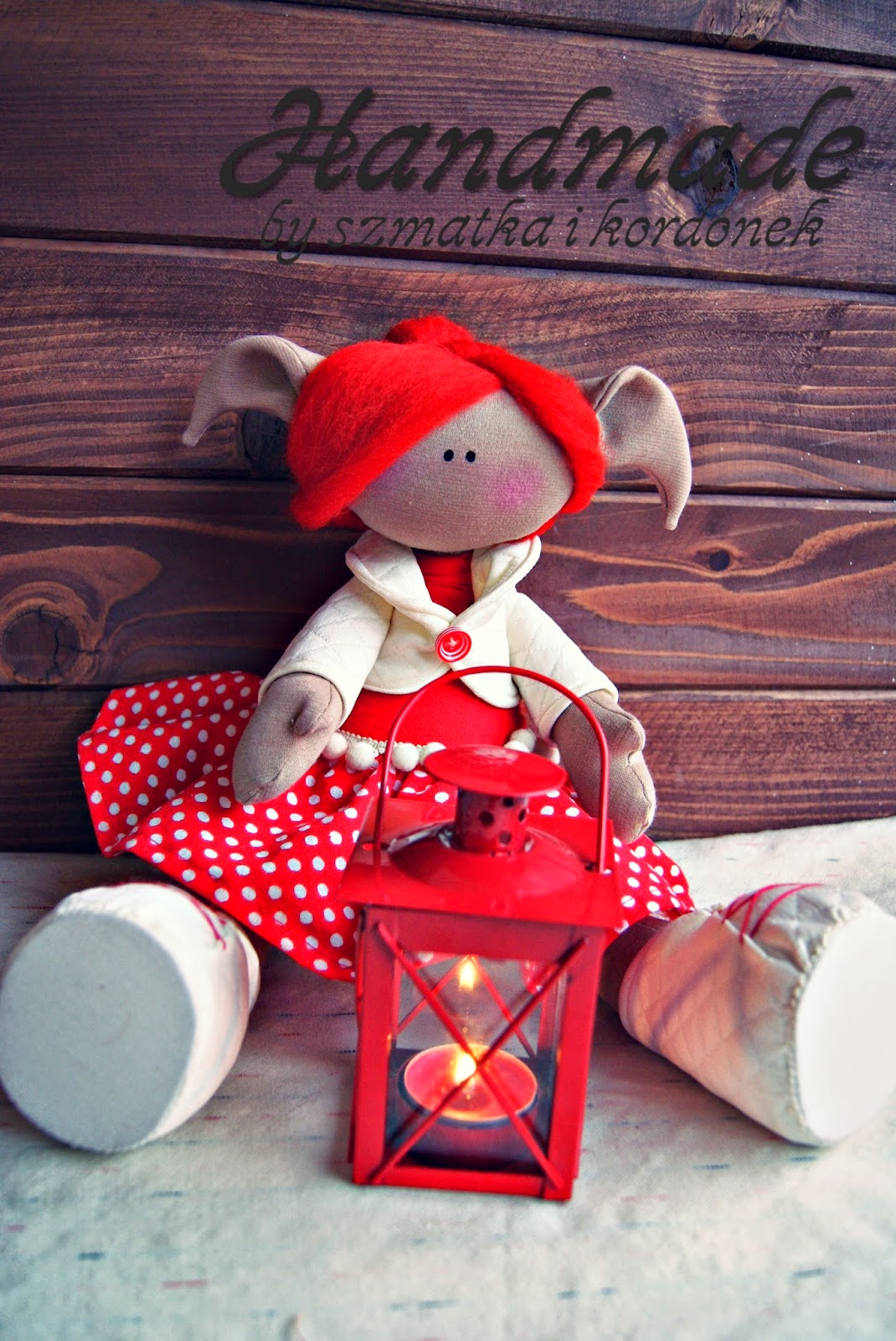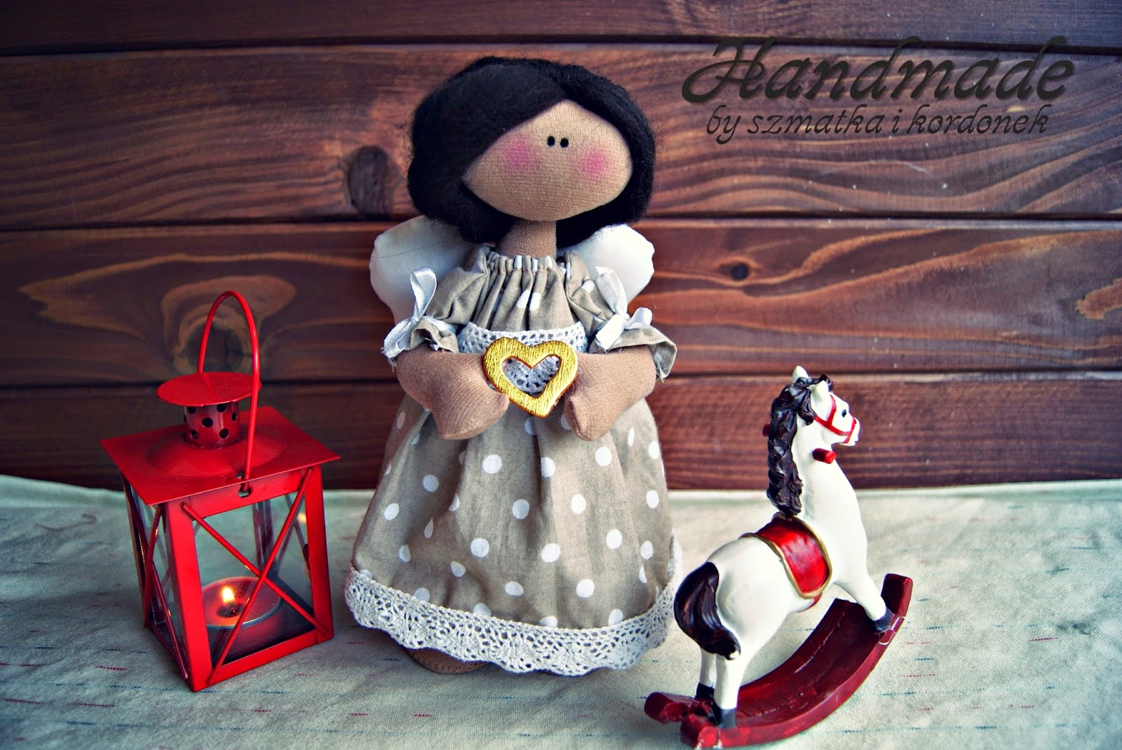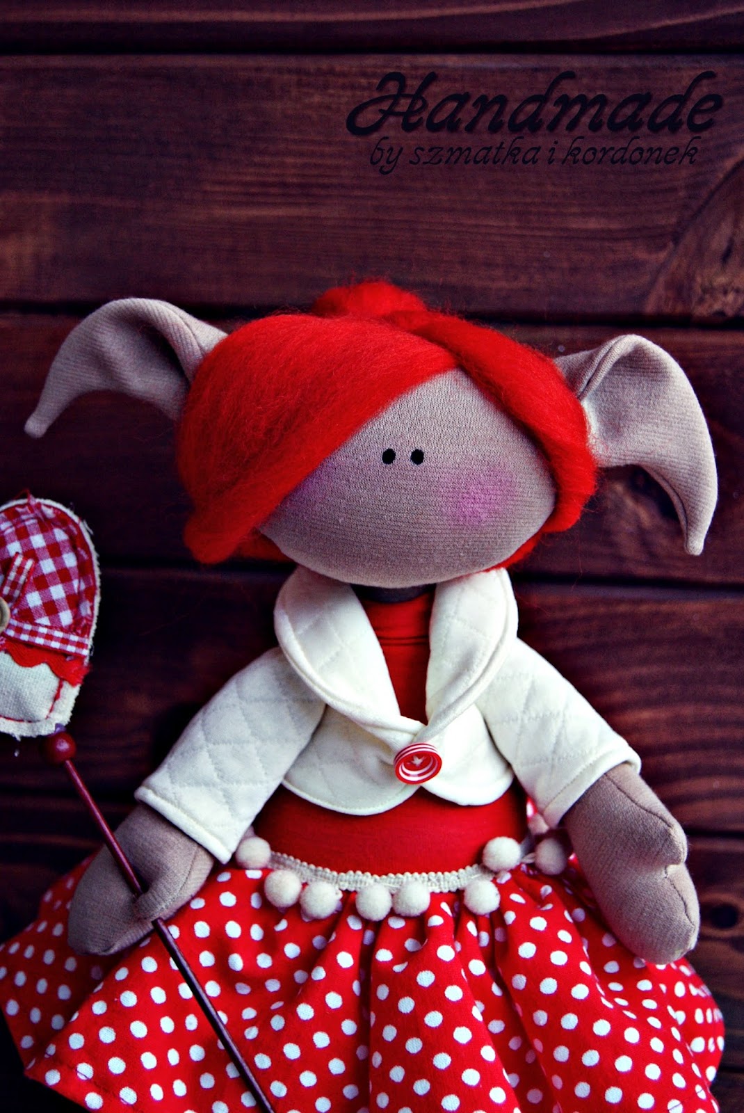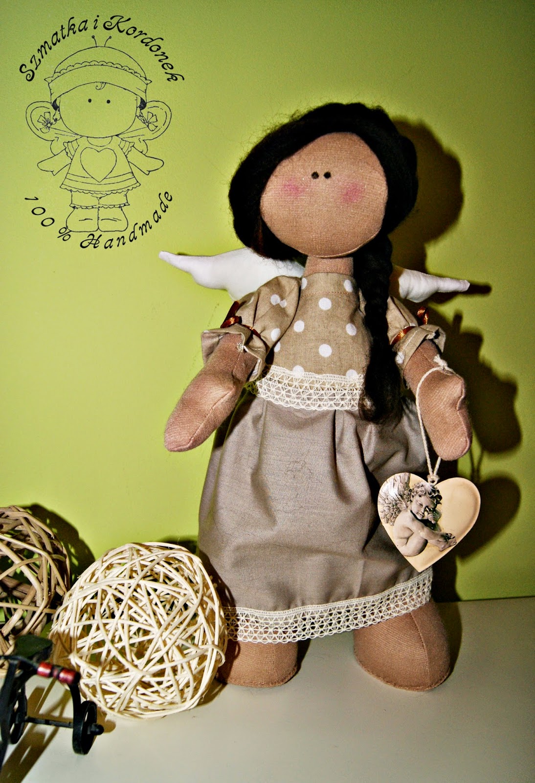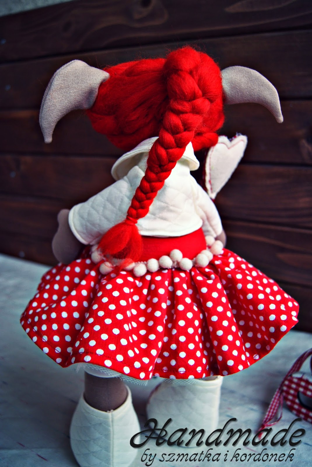 Nie jestem fanką lalek z uśmiechem bo wole takie "bez buźkowe" ale nie odmawiam szycia takich uśmiechniętych. Na specjalne zamówienie powstała lalka szmacianka dla dziewczynki która uwielbia intensywnie tulić lalki.... Lala miała być kolorowa, miękka i szeroko uśmiechnięta.