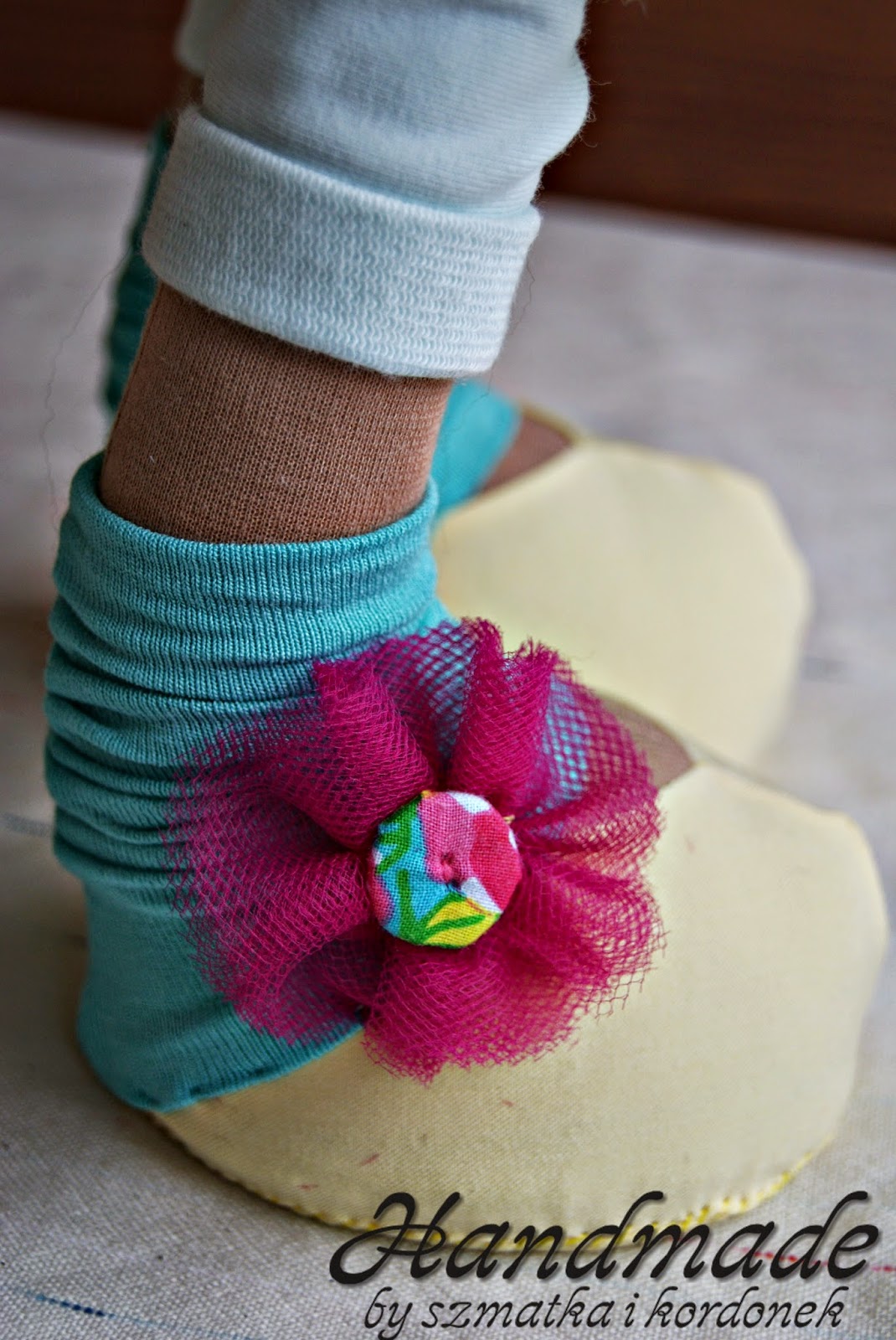Lala ubrana w dresowy komplecik getry i tunikę oraz płaszczyk z kapturem w piękne kwiaty. Ma 41 cm, ciemne wełniane warkocze.